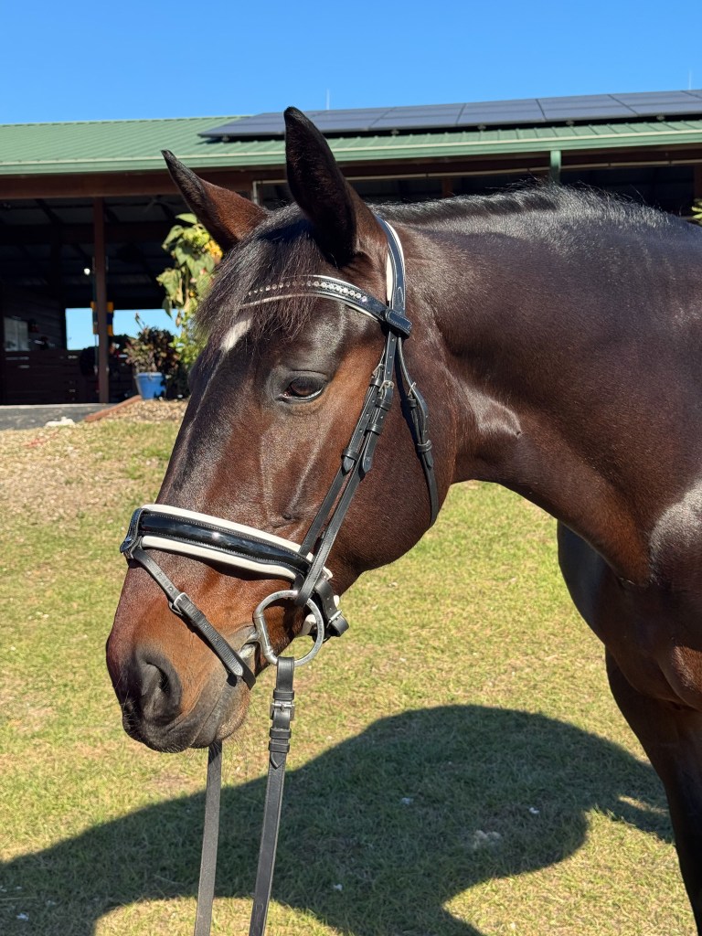 Dreamer is a sweet boy and would love to teach someone the ropes. Dreamer has shown through PSG and knows all the tricks – changes, half pass, mediums etc. He hacks and jumps, gets on the trailer and is the same ride away from home. He’s handsome and easy in the barn. He likes regular turnout, socializes with other horses and doesn’t have any vices. Dreamer can be strong in the bridle and likes to hang on the hand. With a rider who can put their leg on he can become lighter and improves in self carriage. He would love to teach someone the moves and bring them through the lower levels, even earn USDF medals.